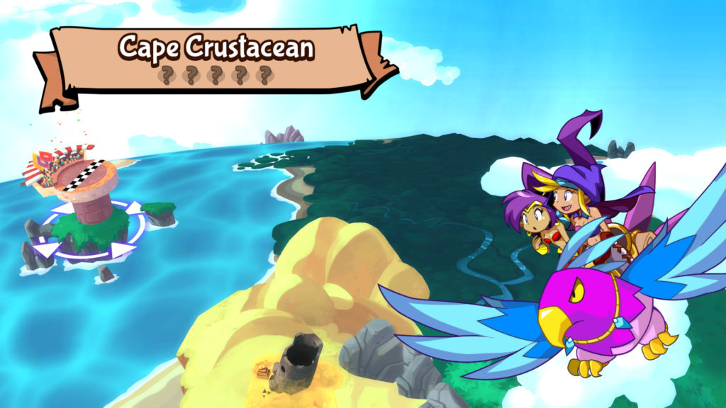 Como ya hemos comentado el juego se compone de un total de siete mundos, a ellos viajaremos desde la ciudad central en la cual hay una serie de habitantes que nos irán revelando diversas pistas sobre nuestros próximos objetivos. En esta ciudad hay puntos claves como los baños donde podremos reponer toda nuestra vida y nuestro maná, o la tienda en la que se encuentra a nuestra disposición una serie de mejoras que harán a Shantae más fuerte, resistente o rápida. Pero el punto más importante dentro de esta ciudad será la cabaña de Sky desde donde a lomos de un pájaro gigante podremos desplazarnos hasta cada uno de los niveles.