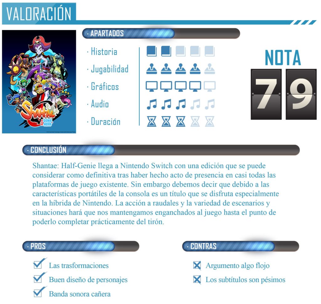 La desarrolladora WayForward lleva a Nintendo Switch Shantae: Half-Genie Hero un título lleno de magia con una gran trayectoria a sus espaldas. Es precisamente de esa trayectoria con la que queremos empezar este análisis ya que Shantae, al igual que Shovel Knight, se ha convertido en todo un icono de los videojuegos pese a haber tenido unos comienzos muy humildes pero que, a diferencia del caballero de Yatch Club Games, la medio genio cuenta con unos años más a sus espaldas ya que la consola que la vio nacer fue la Game Boy Color allá por principio del 2000.