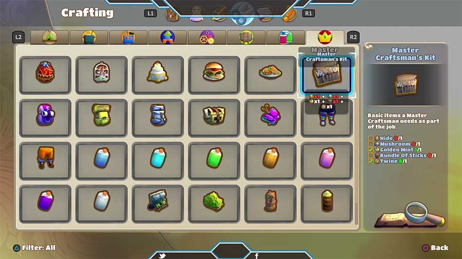 La exploración tendrá un fin, a través de nuestros viajes podremos ir recolectando diferentes materiales que nos servirá para construir varios objetos que nos servirá para completar ciertas misiones. Para llevar a cabo esta tarea contaremos con una serie de herramientas que podremos obtenerlas de algunos aldeanos, comprarlas en los puestos de comerciantes o crearlas nosotros mismos, siempre que dispongamos de los materiales necesarios para ello. Así pues contaremos con hachas para cortar madera, mazos para romper piedra, picos para extraer piedras preciosas o una hoz para arrancar las malas hierbas. Cada una de estas herramientas es única y tendrán un fin por lo que podrá ocurrir que no podamos obtener algún material necesario para avanzar en una misión por no disponer de la herramienta en cuestión.
