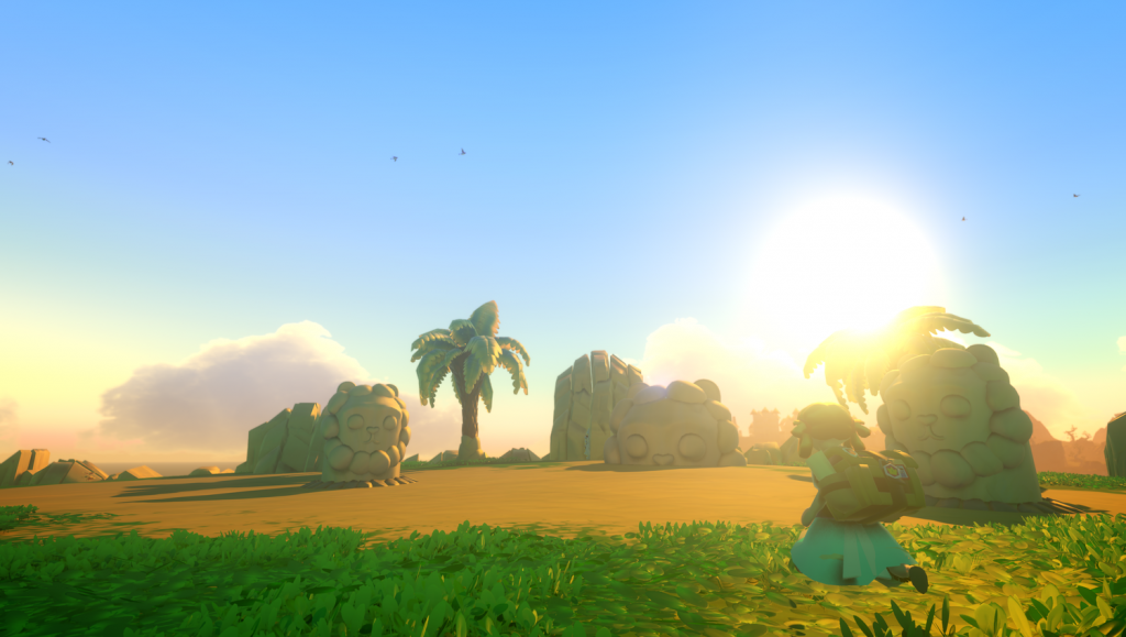 Como venimos anunciando, el apartado artístico de Yonder es lo más sobresaliente del juego, todo el su mundo está diseñado para que nos entre por los ojos y nos trasporte a la mágica isla de Gemea. Su estética, cercana al cell-shading pero con una clara evolución, nos recuerda al mundo creado para Zelda Breath of the Wild, por su diversidad de zonas, su armoniosa atmósfera y su relajante colorido.