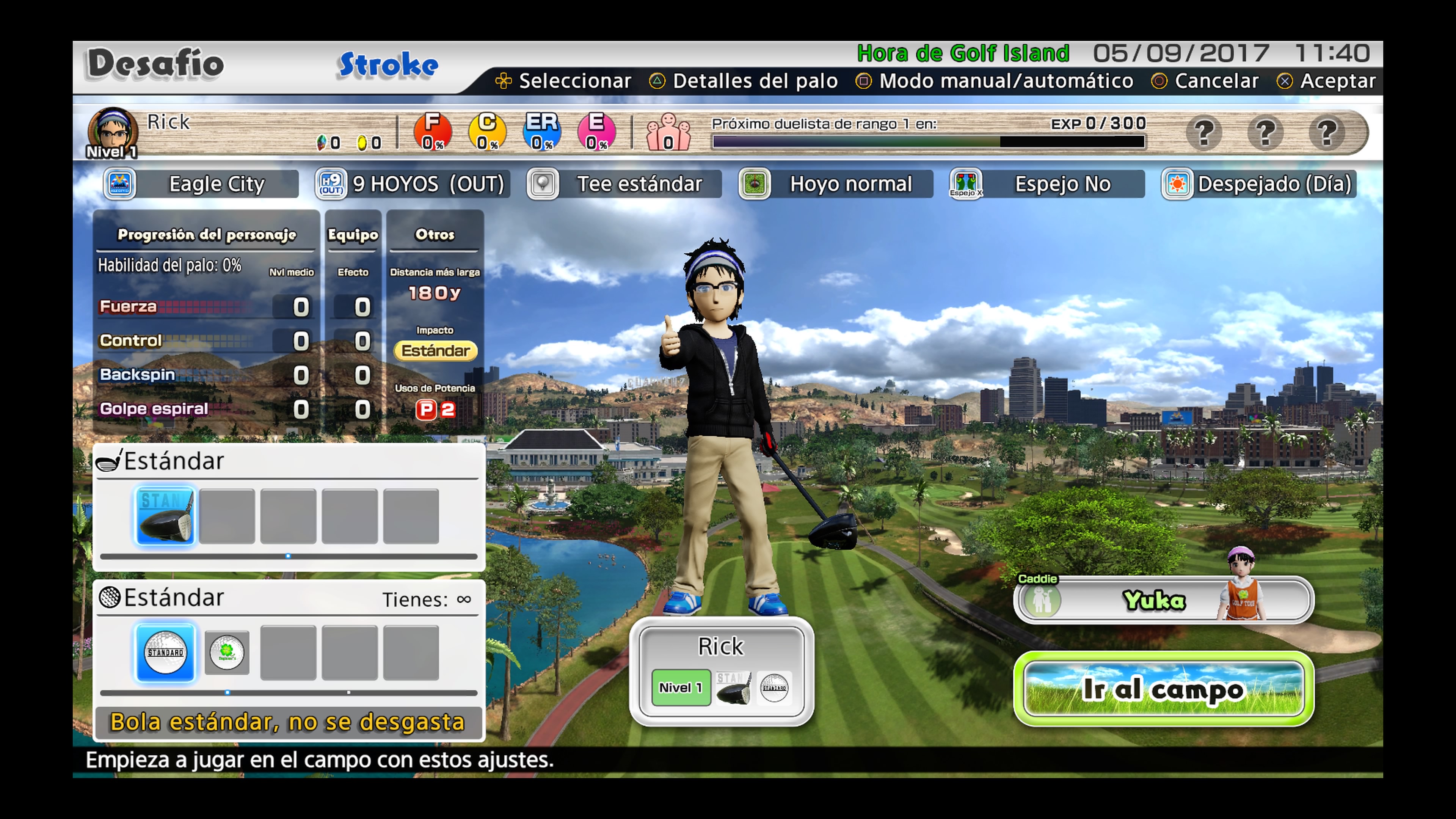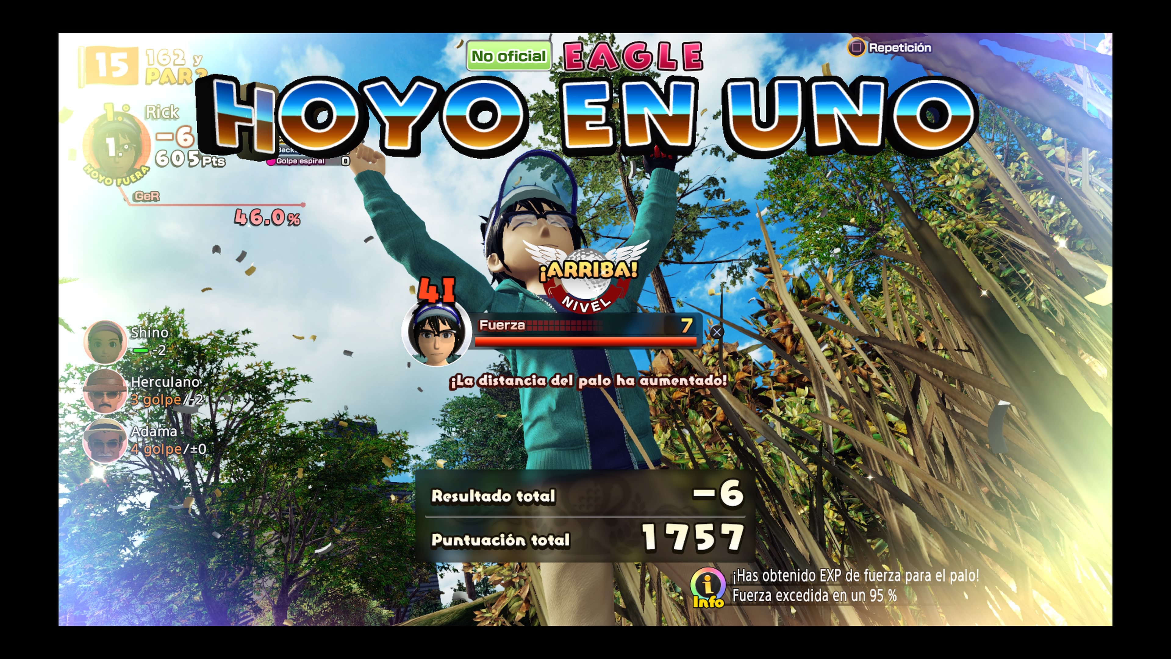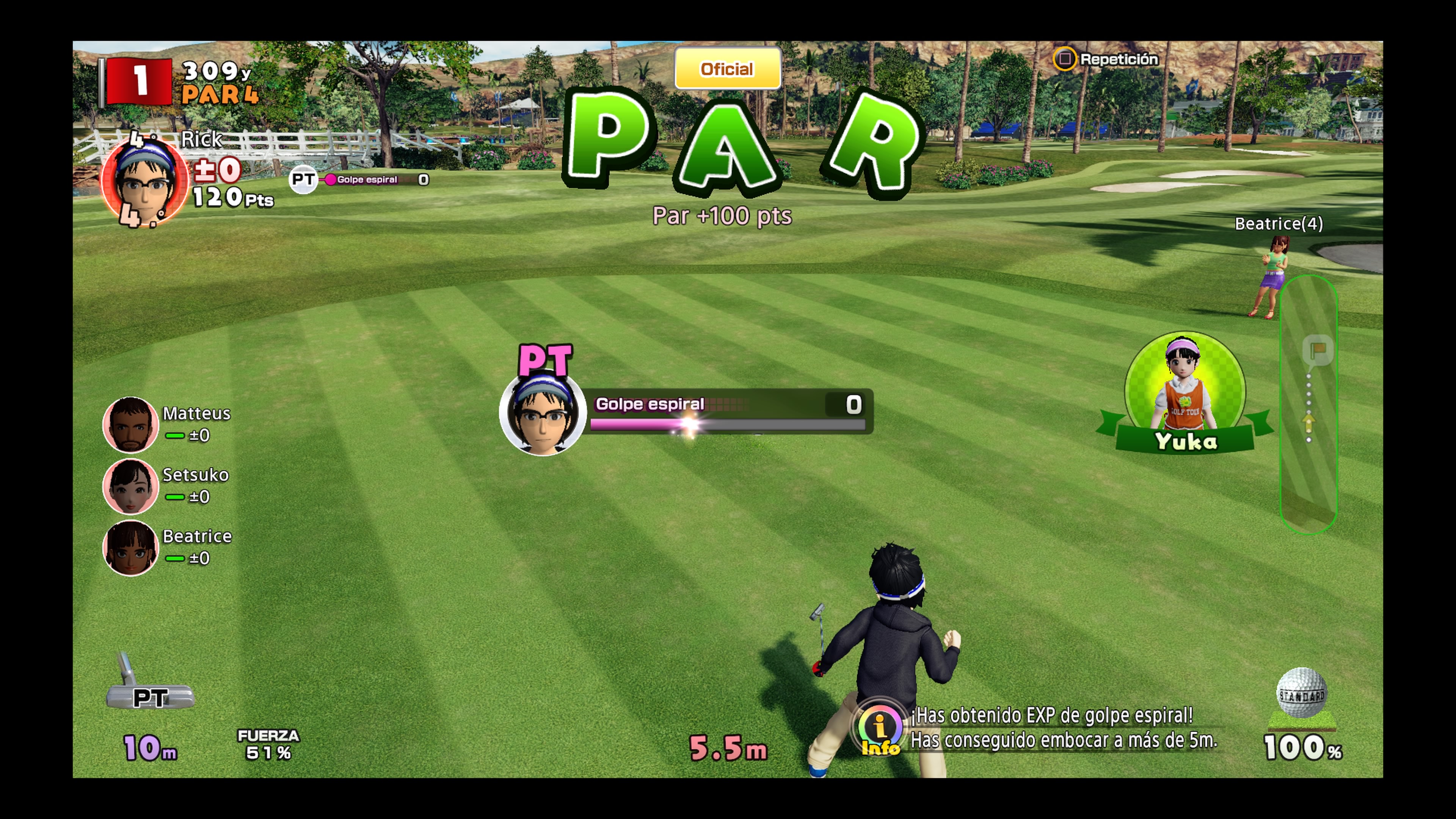 Si alguien no ha jugado nunca a ningún juego de golf, o no conoce las reglas básicas de este deporte, no debe desesperarse pues básicamente se trata de intentar hacer un hoyo en el menor número de golpes posible. Al comenzar en cada uno de los campos se nos indicará el número de tiros necesarios para hacer un Par, de ahí, dependiendo si hacemos más o menos golpes, puntuaremos de una forma u otra, siendo un Eagle la mejor forma posible de terminar la partida y un triple boogie la peor. Esto es muy importante pues cada vez que acabemos un escenario se nos puntuará y tener golpes en negativo da más valor que tenerlos en positivo. Es posible que al principio parezca complicado, e inclusos desesperante, pero poco a poco se le coge practica y podréis convertiros en todos unos hachas de este deporte.
