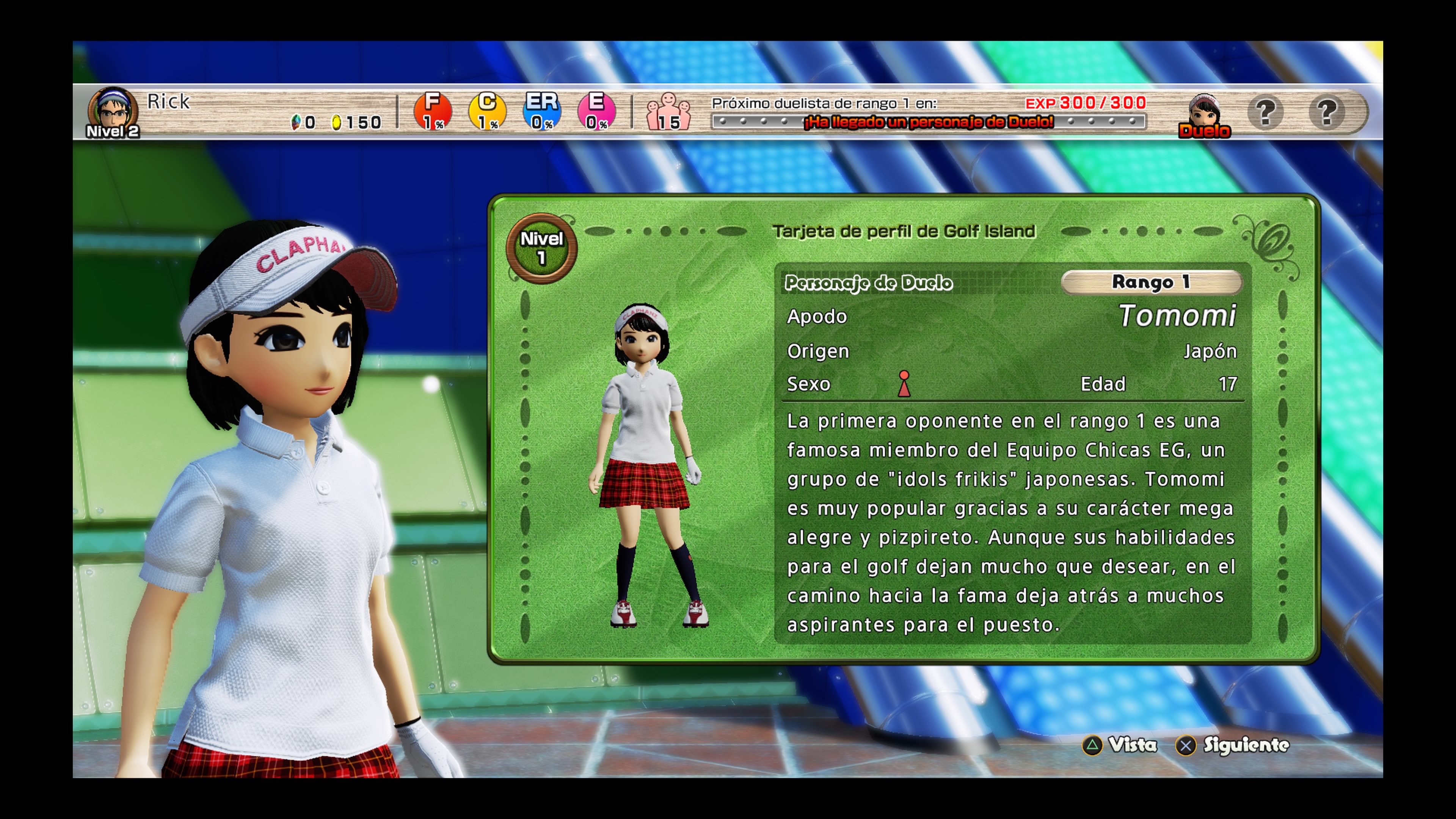 Nuestra primera parada será la Golf Island un entorno que se asemeja al aspecto de algunos MMO donde podremos encontrarnos con NPC´s con los que conversar y que nos darán pistas o trucos para triunfar en nuestras partidas. Esta zona será la que nos sirva de conexión también para realizar las opciones básicas del juego como pueden ser inscribirse en un torneo, participar en un duelo o ir de tiendas donde podremos comprar nuevos accesorios y ropas para nuestro avatar.