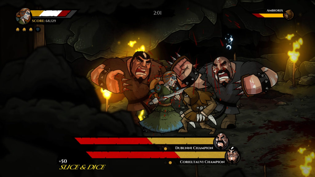 Recordando a clásicos como Golden Axe, Sengoku o Knights of the Round, Wulverblade nos presenta un beat’em up de desplazamiento lateral en el cual podremos dar rienda suelta a la violenta destrucción por parte de sus tres protagonistas hasta cumplir su objetivo de defender su tierra natal y expulsar a las tropas romanas de Britania.