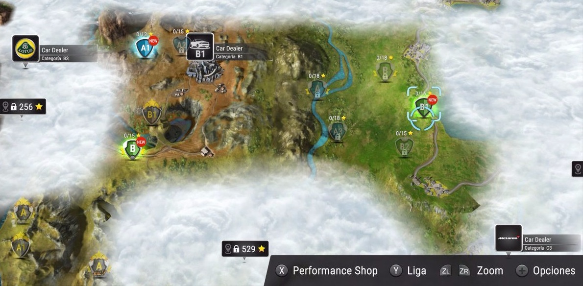 Pero el dinero no lo será todo el Gear Club, también debemos hacer alusión al contador de estrellas que podemos equipararlo a nuestra puntuación. Al acabar una determinada carrera se dará una nota que se extrapolará a estas estrellas, dependiendo como nos hayamos desenvuelto aquí se nos darán hasta tres y esto será muy importante porque nos permitirá desbloquear nuevas zonas del mapa que nos pedirá como requisito un número determinado de ellas. Como es natural podremos repetir las carreras en las que no hayamos obtenido una buena puntuación, de esta manera podremos mejorar nuestro tiempo y obtener un mayor número de estrellas que nos sirvan para poder seguir adquiriendo nuevas zonas de juego.