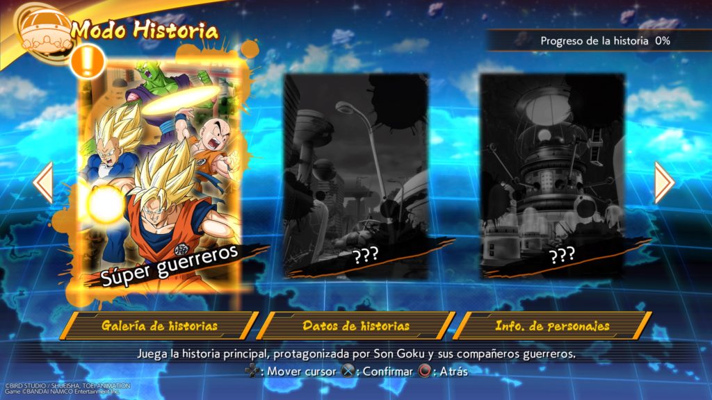 En primer lugar el modo historia, aqui tenemos las tres ya comentadas que nos muestran los acontecimientos situados tras el torneo con el universo 6. Este modo tiene lago de gestión y ciertos componentes de rol y farmeo. Pues debemos luchar contra varios enemigos para subir nuestros personajes de nivel, esto aunque parezca una pérdida de tiempo al principio se notara al final pues si bien tras cada combate recuperamos una parte de nuestra salud, en las rectas finales y con enemigos cada vez más poderosos debemos tener una plantilla de luchadores los más entrenada posible.