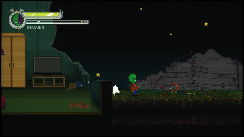 Nightmare Boy es un metroidvania en el más amplio sentido de la palabra. Desde un principio vamos a ver que manejando a Billy/Rolok podremos ejecutar toda una serie de acciones propias de este género de juegos como pueden ser saltar o atacar a puñetazos. Estas serán las habilidades básicas desde un comienzo pero a medida que vayamos avanzando en nuestra pesadilla iremos adquiriendo un repertorio bastante abundante y variado.