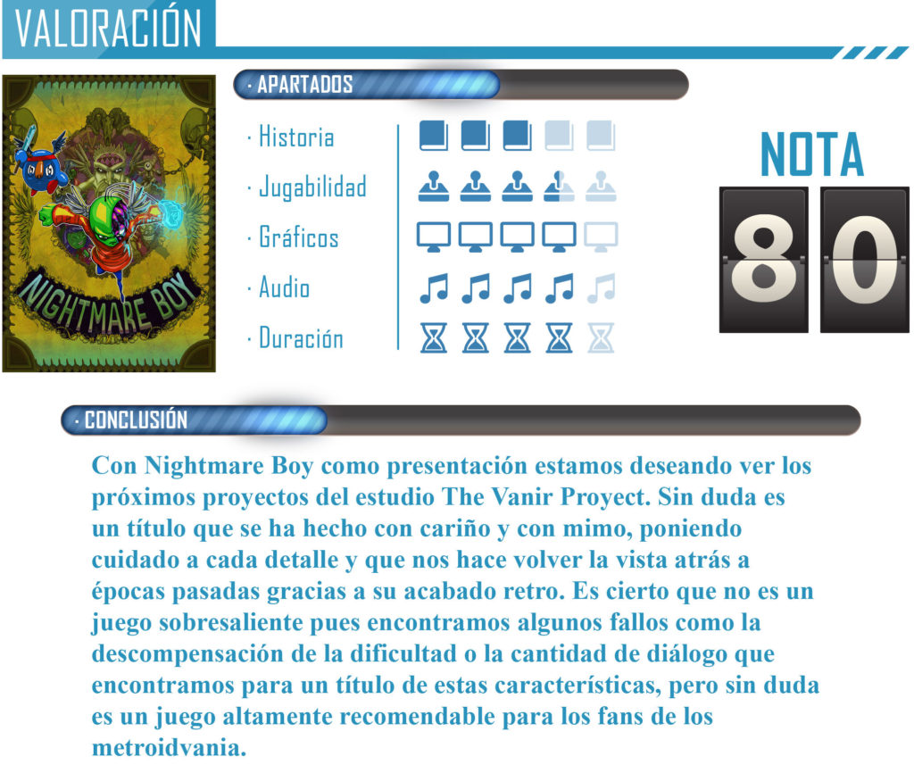 Despertar de una pesadilla nunca es fácil y menos si es de una de esas que parecen tan reales que incluso nos causa algún que otro sudor frió, pero afortunadamente hay pesadillas dulces y eso es lo que es Nightmare Boy, el primer juego del estudio español The Vanir Project que consigue transportarnos a un terrorífico mundo retro donde las pesadillas serán la menor de nuestras preocupaciones.