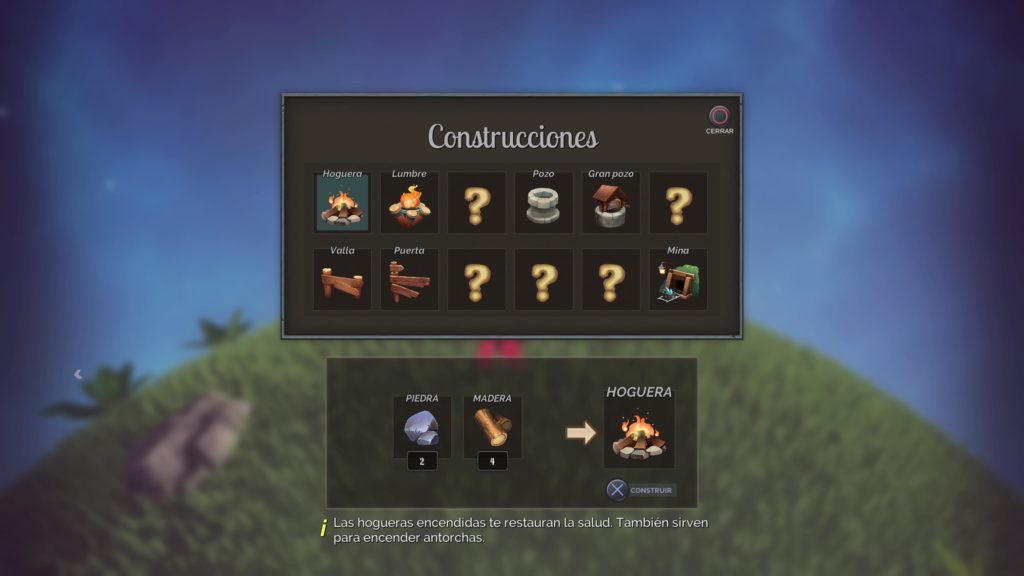 Tenemos un sistema de construcción bastante simple en el que podemos construir distintas estructuras a medida que avancemos en el juego como un muelle para pescar, una mina o un establo. Con estas conseguimos mayor eficiencia en nuestra recolección de recursos como extraer materiales de la piedra o cultivos más productivos.