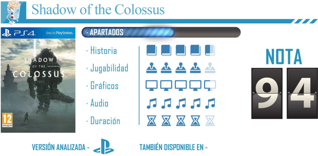 Con Shadow of the Colossus no podemos hacer otra cosa nada masque aplaudir y admirar un título que tiene el sello personal y la visión que Fumito Ueda sabe trasmitir en sus obras, un juego que lo podemos clasificar como “obra de arte” en todo el sentido de la palabra, y un título que sin duda volverá a enamorar a aquellos que jugaron al original de PlayStation 2, y que también supone un acercamiento fantástico para aquellos que no pudieron probarlo hace ya más de una década.