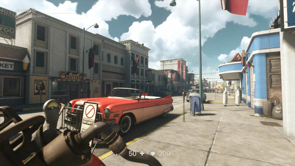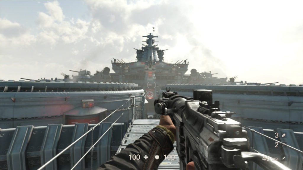 Estéticamente nos presenta esta sociedad o mundo alternativo donde los nazis ganaron la guerra gracias a sus máquinas de guerra y sus armas. Todo en el juego tiene una perfecta mezcla entre las armas de este periodo y una especie de futurismo distópico y esto se puede observar también en los trajes, enemigos y edificios.