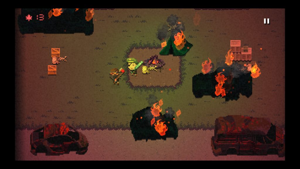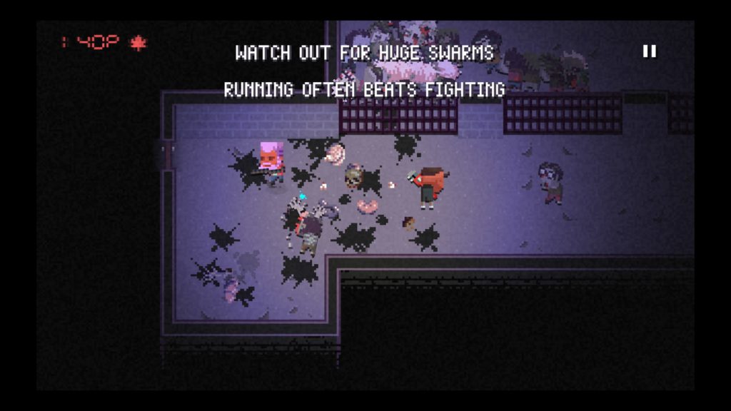 La acción es bastante sencilla, solo tenemos que atacar a los zombis e ir moviéndonos por el escenario. Podemos atacarlos cuerpo a cuerpo o lanzarles parte del mobiliario y bloquearles en paso con puertas. Si bien no son muy inteligentes, los zombis nos seguirán a lo largo de la partida al interior de los edificios y las habitaciones por lo que debemos ser rápidos “luteando” para impedir que nos acorralen.