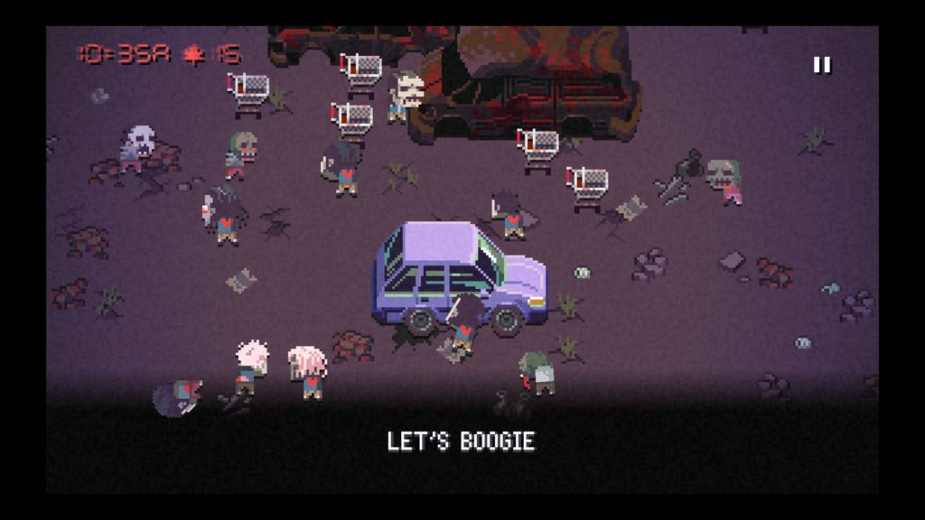 Gráficamente se basa en pixel-arts, no de los más elaborados que podemos encontrar en juegos de este tipo, pero si tiene bastante encanto y personalidad. Los movimientos de los personajes y zombis son bastante sencillos. Los escenarios son simples pero divertidos, se generan de manera procedural. Destacar el aspecto de los vehículos y la gran variedad de ellos, pero también mencionar las grandes cantidades de referencias que existen a la cultura popular y que lo convierte en un juego homenaje a décadas pasadas.