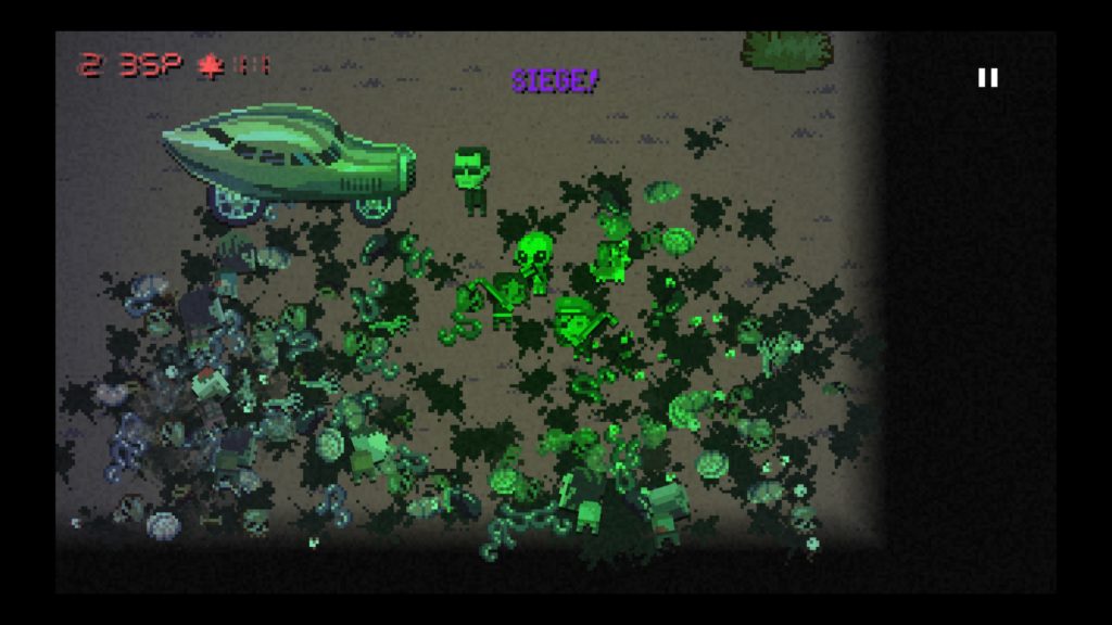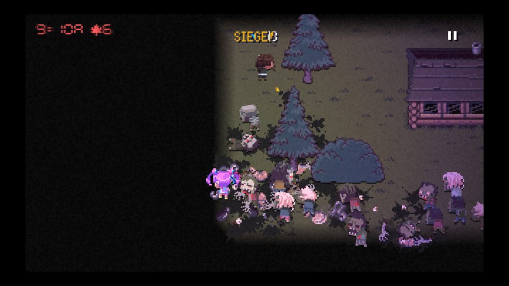 Otro de los eventos que pueden darse es un asedio, en este tipo debernos resistir un tiempo determinado y tras este asedio deberemos huir. Podremos encontrar campamentos de supervivientes para intercambiar comida por armas o por personajes o habilidades de nuestros personajes. Por último están los eventos particulares que van desde sobrevivir o comerciar con bandidos a eventos tan surrealistas y graciosos como que uno de nuestros personajes ha soltado una ventosidad y se inculpan entre ellos.