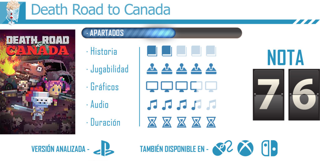 Death Road to Canada esun juego que combina algunos aspectos de los títulos con mecánicas de roguelike que en tanto auge están en los últimos tiempos, pero también suma algunos aspectos de gestión de recursos, acción y sobretodo suerte a la hora de obtener nuestros recursos para sobrevivir.
