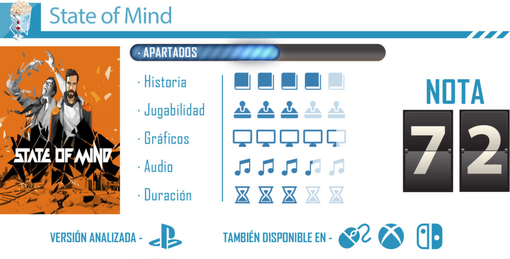 State of Mind es por lo tanto un título interesante pero no está exento de fallos técnicos y de desarrollo que se materializan en unos personajes un tanto planos y sin carisma y ciertas caídas de frames, además de un control un tanto flojo y arcaico. Aunque pese a esto es un título atractivo al que merece la pena darle una oportunidad.