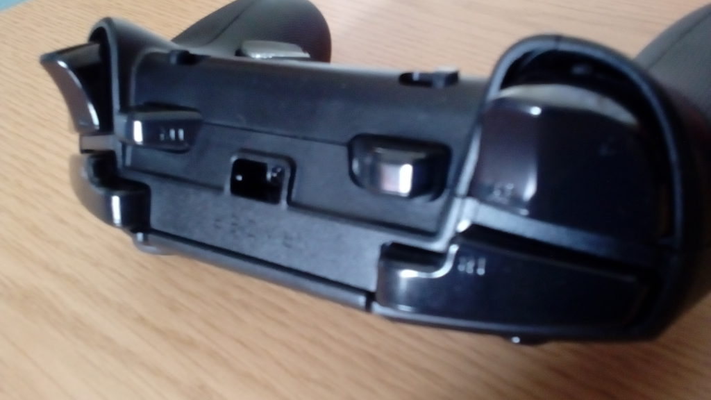 Siguiendo en la parte trasera del mando vemos como aquí se encuentra un pequeño interruptor que nos marca la conexión del mando y que podemos ajustar a nuestro gusto. Alternando de esta manera entre una conexión