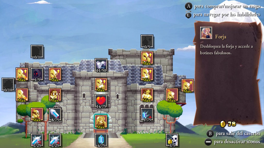 Por último tenemos que hablar de su rendimiento en Nintendo Switch y aquí si podemos ver que se ha realizado una buena adaptación del título a la consola. Todo funciona de una manera fluida y sin ningún tipo de ralentizaciones, esto es algo muy importante porque nada más empezar nos daremos cuenta que Rogue Legacy es un título rápido y frenético.