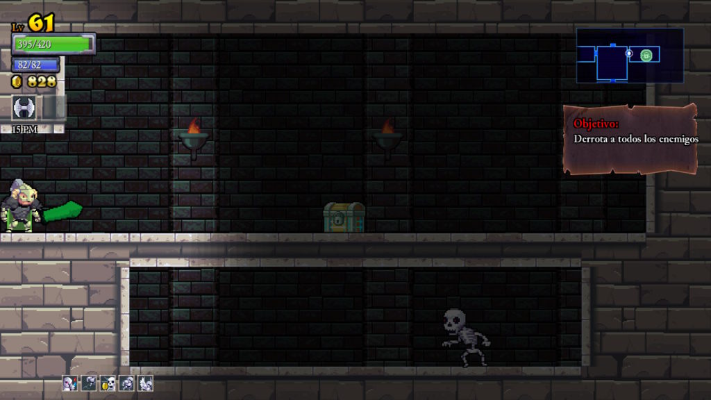 Pues bien, una vez en faena tenemos un ataque principal bastante básico, saltos y sus variantes como doble salto o levitar, un habilidad especial que dependerá de la clase de nuestro personaje y por ultimo un objeto o habilidad secundaria como cuchillos, hachas o una espada gigante, usar estas habilidades consumirá mana y recomendamos usarlas con mesura pues son muy utilices. Existen varias maneras de reponer vitalidad y mana pero los mejores son con pollo y pociones que encontraremos a lo largo del castillo al romper distintas partes del mobiliario.