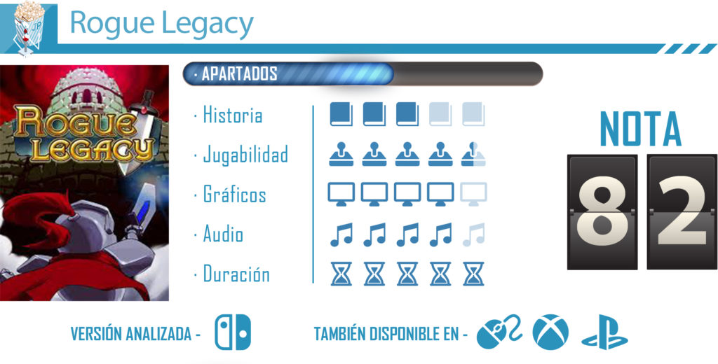 Si buscáis un juego de mecánicas simples pero que no aburra sin duda Rogue Legacy se posiciona en un puesto alto para este objetivo. Estamos ante un título muy divertido y viciante con unas mecánicas que beben directamente de los metroidvania pero que proporciona una personalidad propia gracias a su particular estilo gráfico y a su humor absurdo. Al título solo podemos achacarle algunos fallos por falta de cierto contenido como más niveles o música pero pese a eso tenemos un título altamente recomendable para los amantes de este tipo de juegos y que sin duda nos va a dar una cantidad ingente de horas de juego.