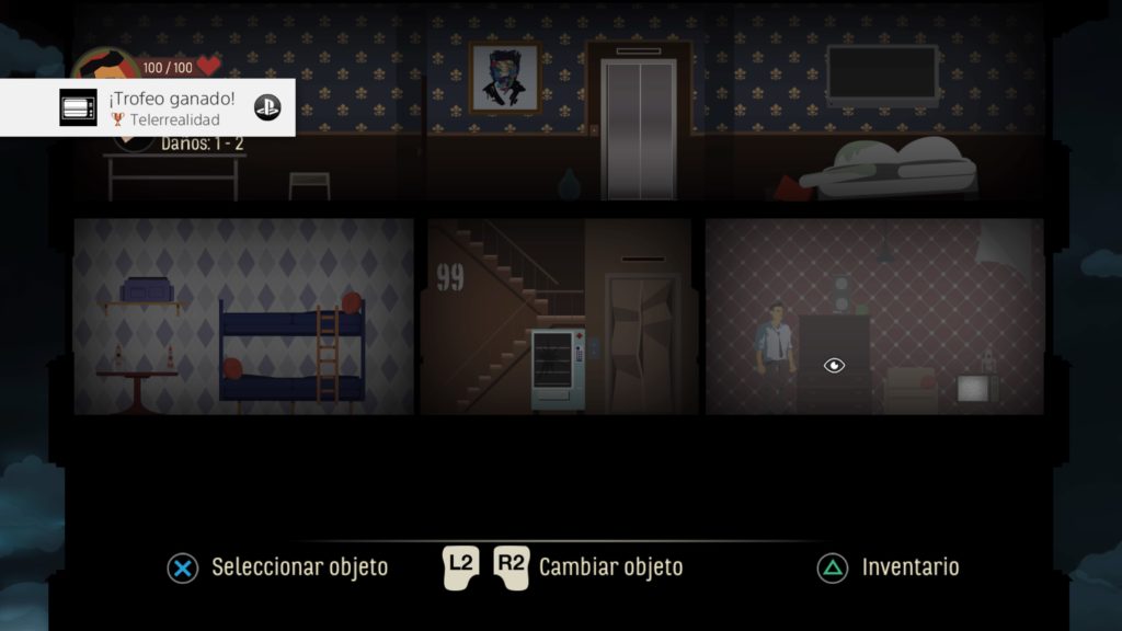En Skyhill tenemos un ambiente muy oscuro que juega mucho con la curiosidad y nos hace querer saber que hay en la siguiente habitación, para ello se usa mucho la penumbra pues todo estará a oscuras hasta que hagamos nuestra incursión en dicha sala, y para entonces puede ser tarde ya que no sabemos que peligros aguardará. Pero Skyhill no es un título que buque dar miedo con su ambientación, sino más bien una estética opresiva y esto es algo que consigue gracias a sus formas de iluminar o quedar en la más absoluta oscuridad las distintas salas que componen este hotel.