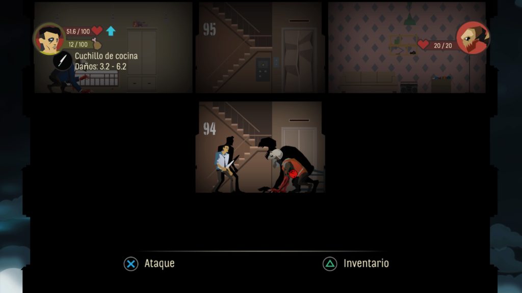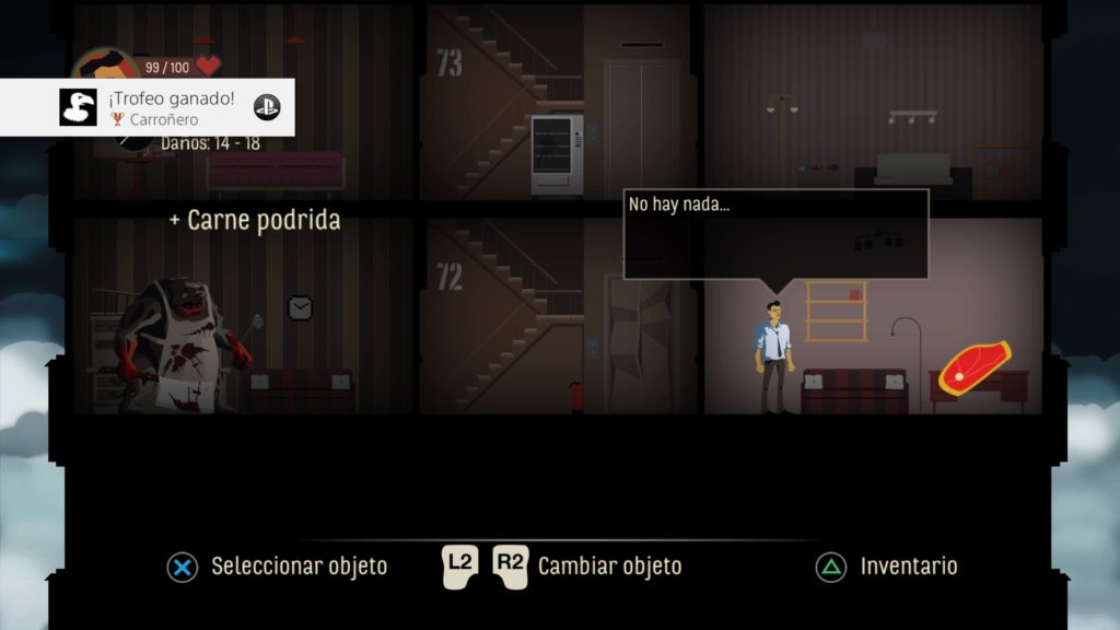 El mapa se generara de forma aleatoria en cada partida y dependerá mucho de la suerte, esto puede hacer que una partida sea fácil y otra sea casi imposible de pasar pues no tendremos recursos ni armas en pisos inferiores. Destacar la curva de dificultad pues a medida que bajemos por el edificio los enemigos se volverán más y más complicados de derrotar.