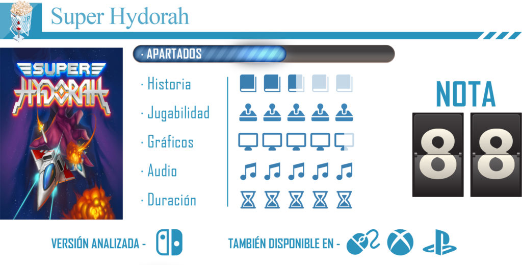 En resumen, horas y horas de adictiva diversión en el que pasarás momentos de “soy el amo del Universo” a momentos de “no tiro la consola por la ventana porque podría caerle a alguien encima y, aparte de tener que comprarte otra, seguro que me denuncian”. Obvio, si la diversión es compartida en el fantástico modo multijugador, mejor que mejor, por eso decimos que Super Hydorah es un título totalmente recomendado, sobre todo para aquellos que disfrutan con este género.