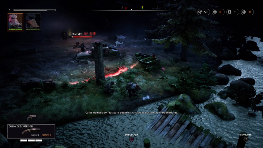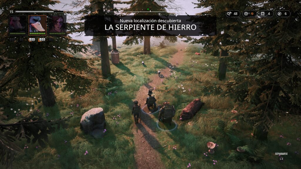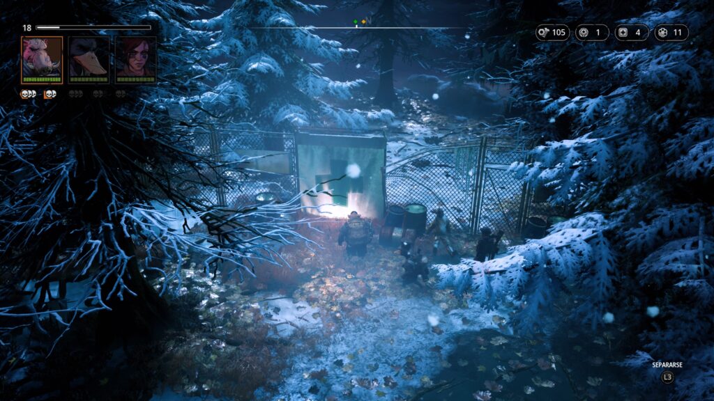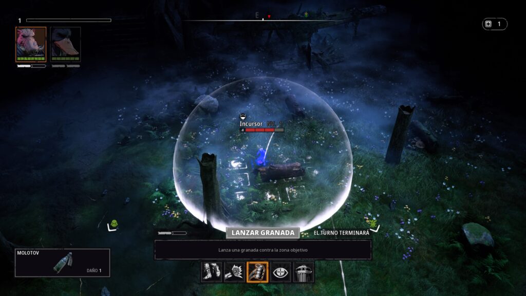 Una vez dentro del combate tenemos un sistema que nos recuerda al ya mencionado X-Com o al título Mario + Rabbids. Nos encontramos con un mapa y un sistema de combates basado en turnos. Cada personaje tiene unos turnos y un área por el que se puede mover, de esta forma tenemos que situarnos de la forma más conveniente no solo para acertar al enemigo con nuestros disparos, sino para estar a cubierto de sus disparos. Para ello tenemos un sistema de coberturas en el que podemos tener cobertura media o total. En cada turno podremos realizar una serie de acciones como pueden ser desplazarnos un número limitado de casillas, disparar, recargar nuestras armas, usar un objeto como granadas, molotov, etc…, curar a un personajes usando botiquines, ponernos en guardia o usar alguna de las habilidades de cada personaje.
