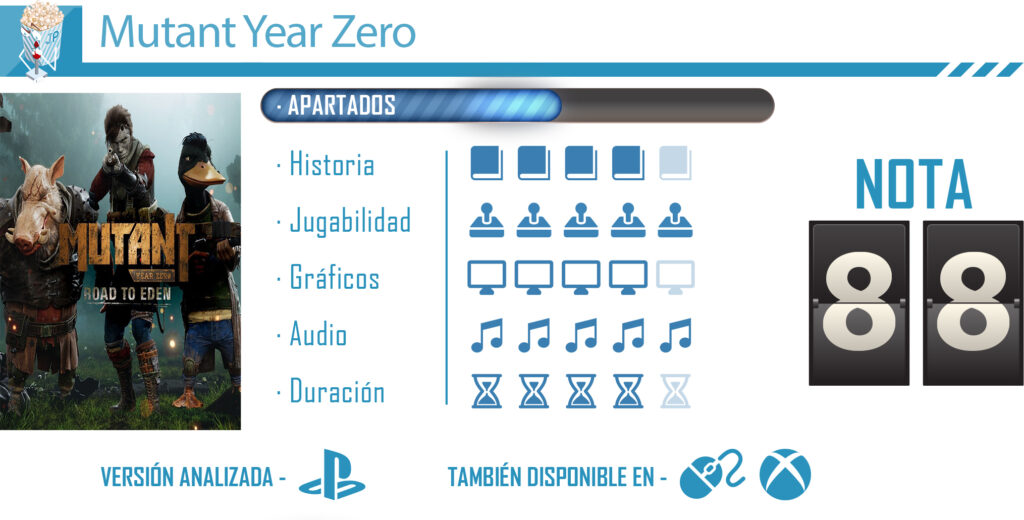 Con todos estos factores, tenemos que decir que Mutant Year Zero se posiciona como un juego de estrategia que mezcla exploración, estrategia y componentes de rol con una formula bastante divertida y que va a gustar a los jugadores del género. Además, su duración, que ronda unas 20 horas, se encuentra bien equilibrada, no dejando puntos muertos entre las misiones y la puesta a punto del equipo necesario para realizar las mismas.