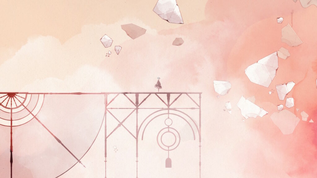 En relación con el cromatismo presente en el juego tenemos los escenarios, los cuales se combinan con estos pero también están sujetos a ellos. GRIS nos presenta una amplia gama de zonas diferentes entre sí pero con un hilo constructor en común que es mostrarnos elementos y construcciones oníricas regidas principalmente por el minimalismo y por la rectitud de sus líneas. En este sentido podemos ver un contraste ciertamente marcado entre la vaporosidad y de delicadeza que puede trasmitir en algunos momentos la protagonista de esta aventura y las construcciones que se aglutinan en este mundo, una dualidad que en la práctica ha funcionado muy bien.