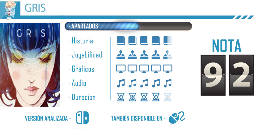 Definir GRIS como un videojuego convencional no sería lo más acertado, puede considerarse más bien como una experiencia narrativa virtual que nos llevará por un camino personal a base del uso de diferentes recursos visuales y acústicos. Nomada Studio ha conseguido con su primer título crear un juego que bien se podría catalogar con la etiqueta de obra de arte gracias a la sensibilidad de derrocha, sobre todo en lo referente al acabado artístico que, por medio de un magistral uso de acuarelas y una gama cromática muy acertada, consigue trasmitirnos unas sensaciones que muy pocos juegos logran en este sentido.