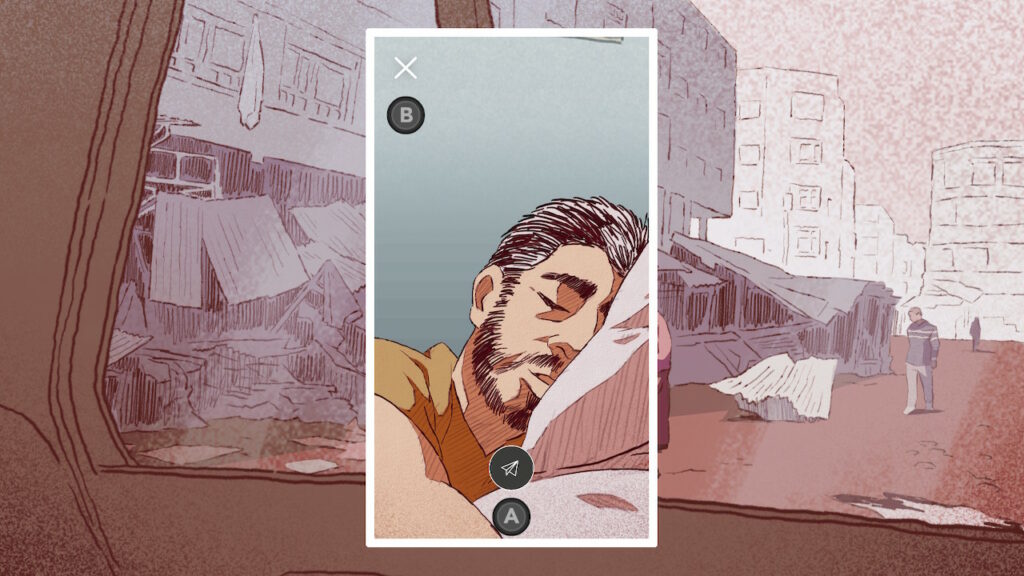 Como jugadores y jugadoras nos ponemos en la piel de Majd, y guiaremos a Nour y su viaje a través de los consejos que le vayamos dando sobre las decisiones que vaya tomando a lo largo del juego (si va por mar o tierra, esperar a un personaje o alcanzar a otro, etc.). Para interactuar con Nour tenemos tres formas: