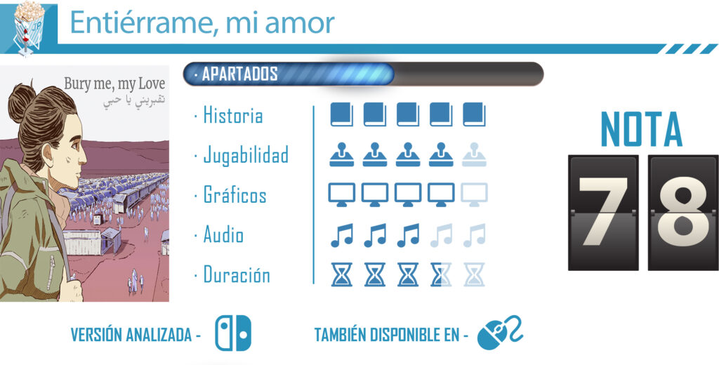 Nos encontramos con un juegazo, que nos va a hacer sentir una gran variedad de emociones y nos va a ayudar a pensar desde otra perspectiva la realidad de los miles de refugiados y refugiadas que tienen que huir de sus hogares, dejando atrás todo y arriesgando lo que les queda. Quizá lo que le falla al juego es que no se puede guardar (a mí me daba miedo apagar la consola por si perdía todo el viaje), pero entiendo que habrán optado por no ponerlo para que no puedas echarte para atrás en una decisión tras ver las consecuencias de la misma, lo que le da también un punto de realismo. Las partidas no son muy largas, y dependerán de cuándo termine el viaje, pero tiene bastante rejugabilidad. Os animamos a que probéis el juego, seguro que no os decepcionará.