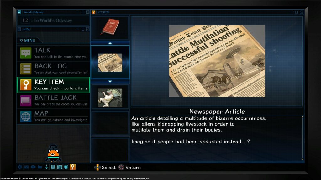 Idea Factory presenta una nueva serie de capturas de pantalla de los diálogos de Death End reQuest, que llegará a PlayStation 4 el próximo día 22 de febrero. Esta serie de capturas de pantalla incluye varios personajes que controlarás en World’s Odyssey, así como el elenco que conocerás en el mundo real dentro del videojuego.