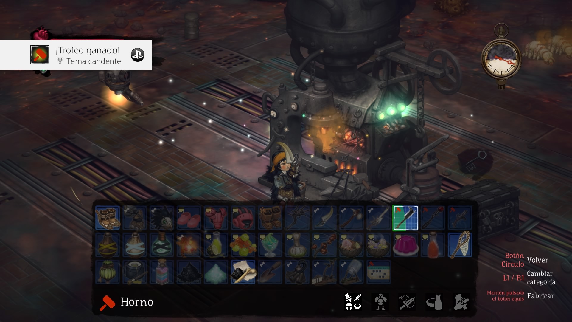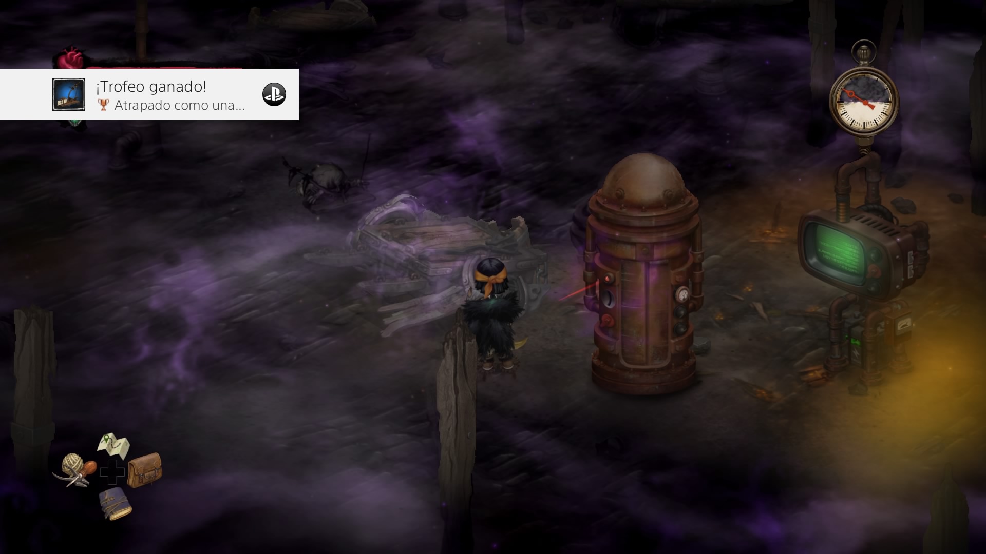 Por último, tenemos los puntos de guardado que hemos mencionado anteriormente. Suelen estar cerca de los tubos de viaje, por lo que podremos guardar cada vez que queramos. Además, el juego te ofrece la posibilidad de guardar cuando te has pasado una parte importante. En la parte inferior tenemos un menú en el que ponemos ver el mapa (arriba), los objetos (derecha), el diario de misiones (abajo) y las recetas (izquierda).