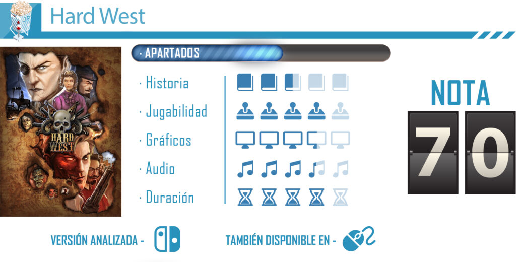 Tras su paso por PC, el estudio polaco CreativeForge Games lanza Hard West para Nintendo Switch, un título que, fiel a las mecánicas vistas ya en otros títulos de la compañía, nos vuelve a poner a mostrar un juego que toma la estrategia táctica por turnos, al más puro estilo XCOM, pero que nos sitúa en el Salvaje Oeste, dando como resultado un juego bastante llamativo, lleno acción y de momentos repleto de gore.