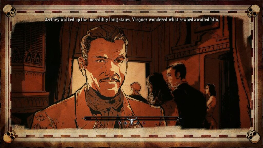 La exploración juega un papel realmente importante en Hard West y está presente prácticamente desde el principio de la aventura. Tal y como hemos indicado, la aventura se desarrolla de una forma capitular, durante las cuales se generaran una serie de diálogos que dan como resultado una mejora de beneficios para la partida, hay que elegir correctamente entre las opciones que nos presentan ya que gracias a ello podemos tendremos más recursos o una mejor posición durante las batallas.