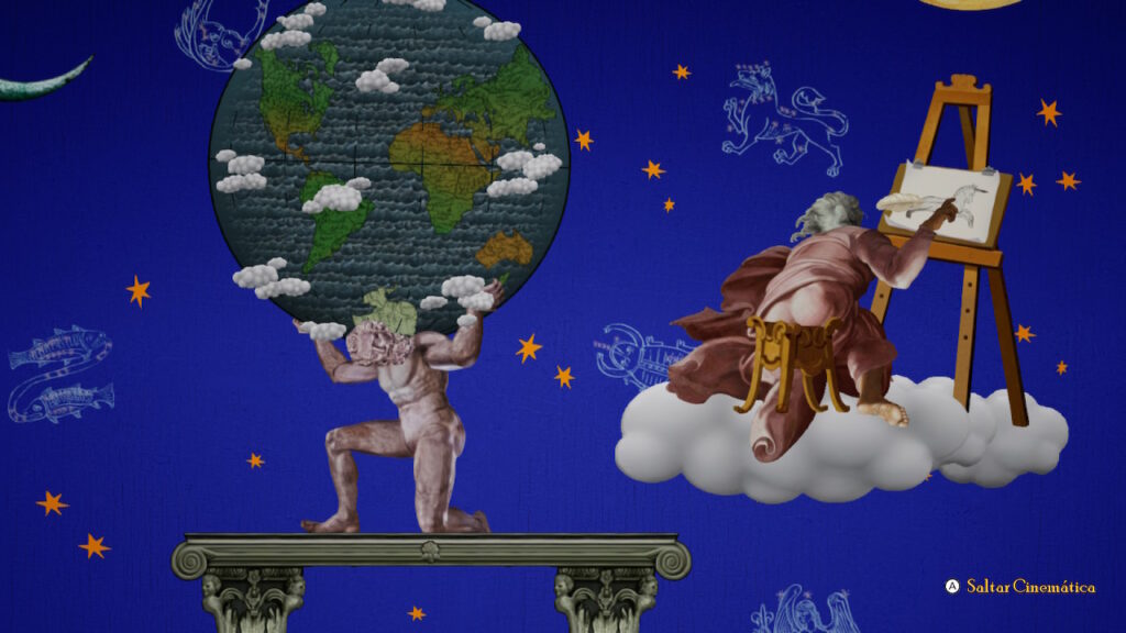La historia comienza con Atlas cargando el mundo a sus espaldas. Mientras que el mismísimo Dios está ocupado creando cosas importantes como son el sol, la luna y los unicornios, Atlas decide darse un descansito de su trabajo y deja de sostener la Tierra, pero en un descuido la Tierra sale rodando y cae fuera de su alcance.