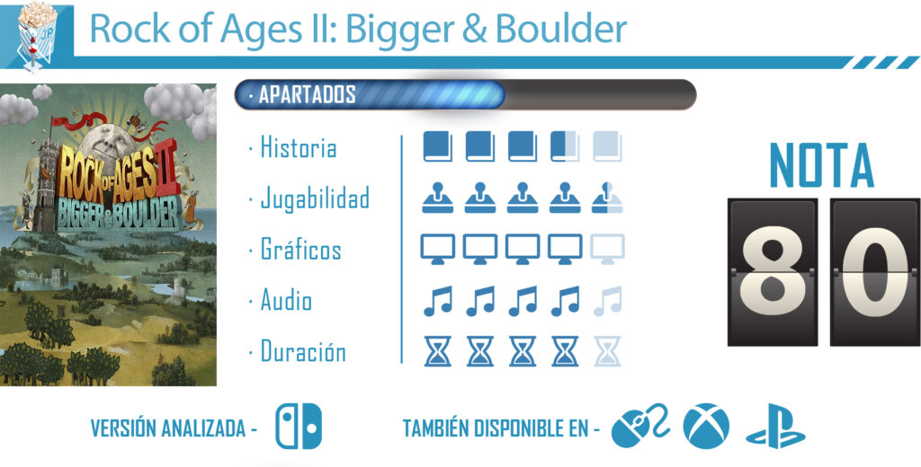En líneas generales, Rock of Ages II: Bigger & Boulder es un título con mucha originalidad y divertido, pero que puede llegar a desinflarse al cabo de un tiempo, pues las mecánicas son las mismas en cada uno de los niveles de la aventura.