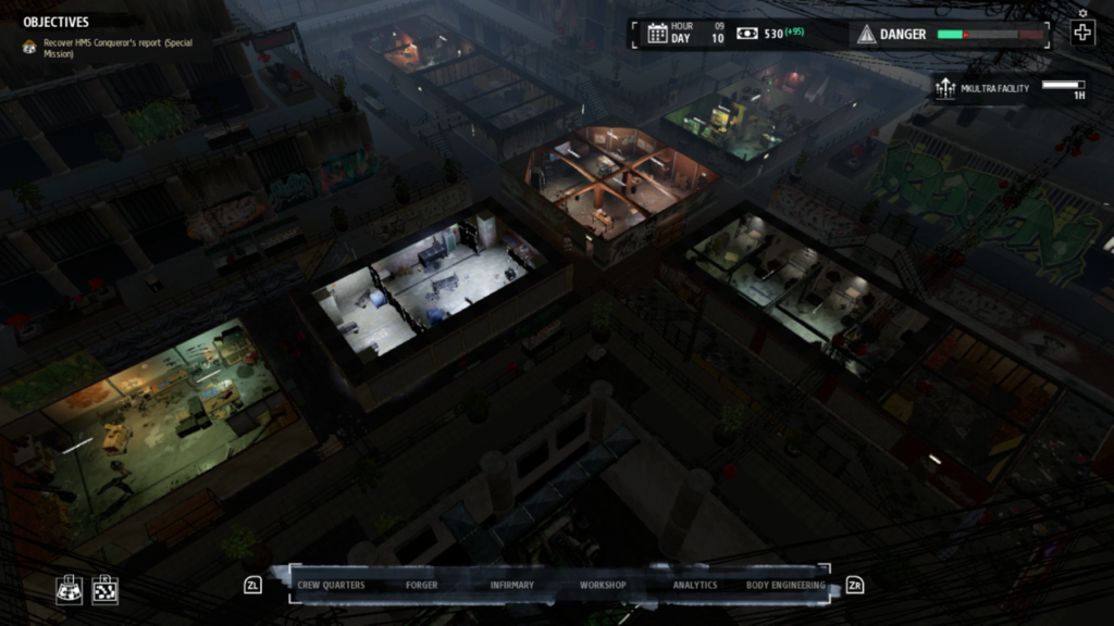 Uno de los aspectos más complejos en Phantom Doctrine es su sistema de gestión. El juego centraliza esto en las oficinas de Cabail y lo presenta de una manera bastante lógica. Aquí podemos valernos de diferentes instalaciones, como talleres, gimnasio, enfermerías o despachos de instalaciones, todas ellas con unas funciones únicas que nos servirán para mejorar a las unidades de espías y otros efectivos a nuestro cargo.