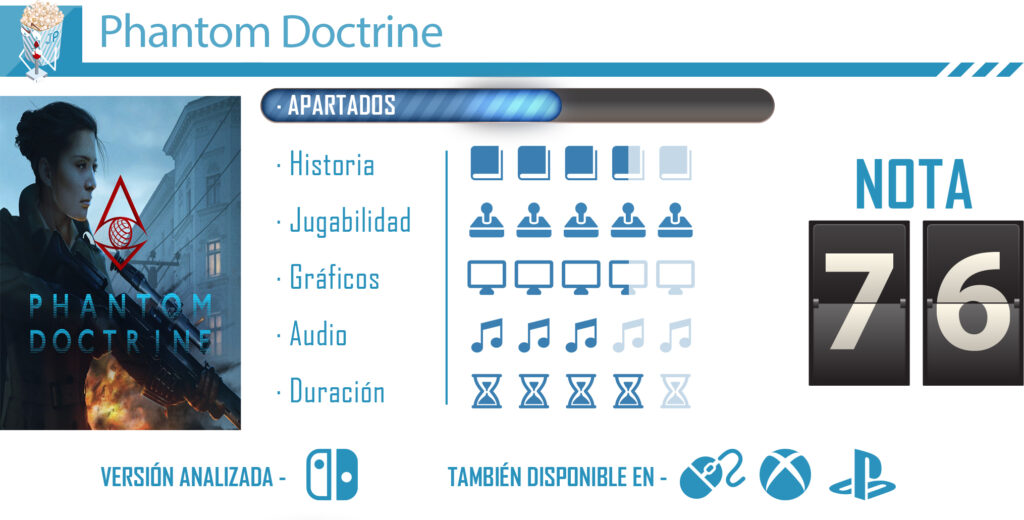 Phantom Doctrine es un juego con grandes posibilidades que ha sabido tomar algunos ingredientes y elementos de títulos como XCOM, pero también presenta algunas carencias inesperadas que empañan en gran medida lo que podía haber sido un título mucho más redondo y completo. La historia se siente algo inconexa, y el no contar con un tutorial más definido terminan pasando factura y generando algo de frustración en el jugador. Pero, también hemos de decir que si se dejan de lado estos aspectos, nos encontramos con un excelente juego táctico de espionaje con algunas ideas interesantes que será fácilmente disfrutable por todos aquellos aficionados a este tipo de juegos.