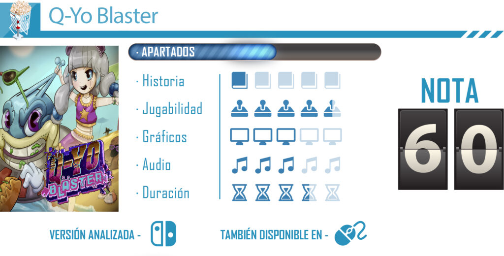 Puede que Q-Yo Blaster no sea el mejor exponente dentro de su género, pero tampoco es de los peores. Es un título bastante correcto y lo suficientemente entretenido como para hacernos estar enganchados de principio a fin gracias a su frenético gameplay. Su estética pixel art y sus efectos de sonidos son los elementos que más destacan dentro de esta aventura, algo que sin duda llegará al corazón de aquellos nostálgicos que eran asiduos a las máquinas recreativas.