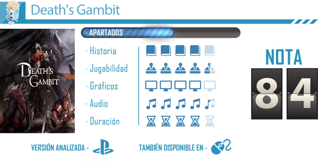 No hay que entender a Death´s Gambit como un Dark Souls en 2D, eso sería desmerecer un juego que tiene una personalidad propia, y bien marcada. El juego de White Rabbit y Adult Swim Games es un alarde magistral de historia, jugabilidad, estética y banda sonora, un deleite para todos los jugadores que busquen una aventura desafiante dentro del mundo de los metroidvania.