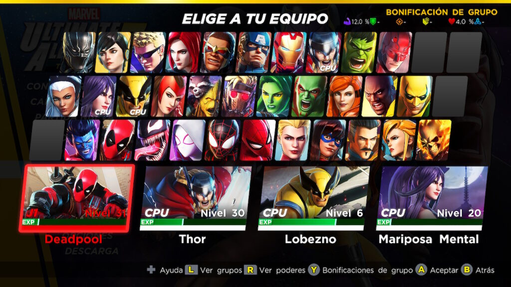 El encontrar a tantos personajes juntos en el mismo juego nos da una libertad suficiente de elegir entre nuestro superhéroe favorito. Con un plantel que se irá desbloqueando a medida que vayamos avanzando en la historia o completando algunas misiones secundarias, también otros se unirán por DLC en el futuro, podemos recorrer un sinfín de escenarios míticos habituales dentro de este universo como El Instituto Xavier, Wakanda o la Torre de los Vengadores.