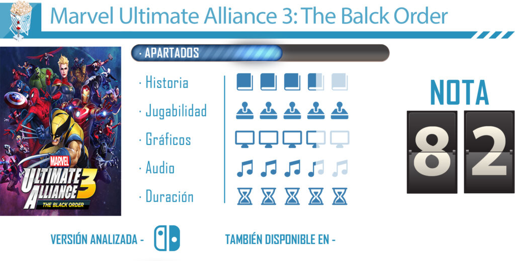 Marvel Ultimate Alliance 3: The Black Order es un producto que aprovecha el tirón del Universo Cinematográfico de Marvel y el fin de su fase tres. Es un título que se dirige principalmente a los fans de los cómics y de los superhéroes que explota la acción más directa por medio de un divertido gameplay que nos hará estar enganchados durante horas. La posibilidad de completar la aventura junto a otros jugadores es todo un acierto, y es sin duda una de las cosas que más nos han gustado.