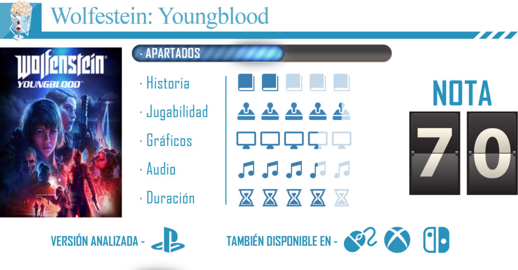 En general estamos ante un juego divertido sobretodo en cooperativo. Nos encontramos muchas innovaciones en este nuevo Wolfestein como es el modo cooperativo y el sistema de niveles. Pero esto también es su problema principal, porque en general se aleja mucho de lo que hemos visto a los otros Wolfestein haciendo que muchos jugadores tengan sentimientos encontrados al acercarse al título. Para concluir, tenemos que indicar que Youngblood es un título divertido y con un precio realmente ajustado, aunque no llega al nivel de las aventuras en solitario de la saga.