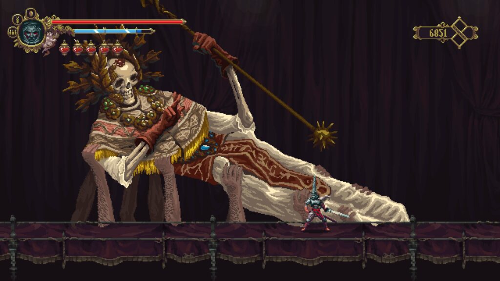 Clasificar a Blasphemous como un metroidvania clásico puede no ser lo más acertado. Es cierto que si jugamos vemos ese factor de exploración que nos puede recordar a la saga Castlevania, donde tendremos un extenso mapa por descubrir y explorar, lleno de secretos y enemigos. Pero hay algo más en la obra de The Game Kitchen, un elemento que nos hace volver la vista a la saga Souls, por su dificultad y sus desafíos.