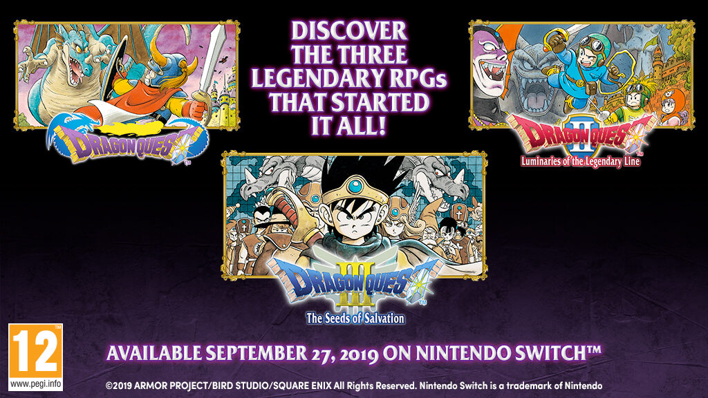 DRAGON QUEST, DRAGON QUEST II: Luminaries of the Legendary Line y DRAGON QUEST III: The Seeds of Salvation podrán comprarse por separado para Nintendo Switch a partir del 27 de septiembre de 2019 y descargarse en formato digital desde Nintendo eShop.
