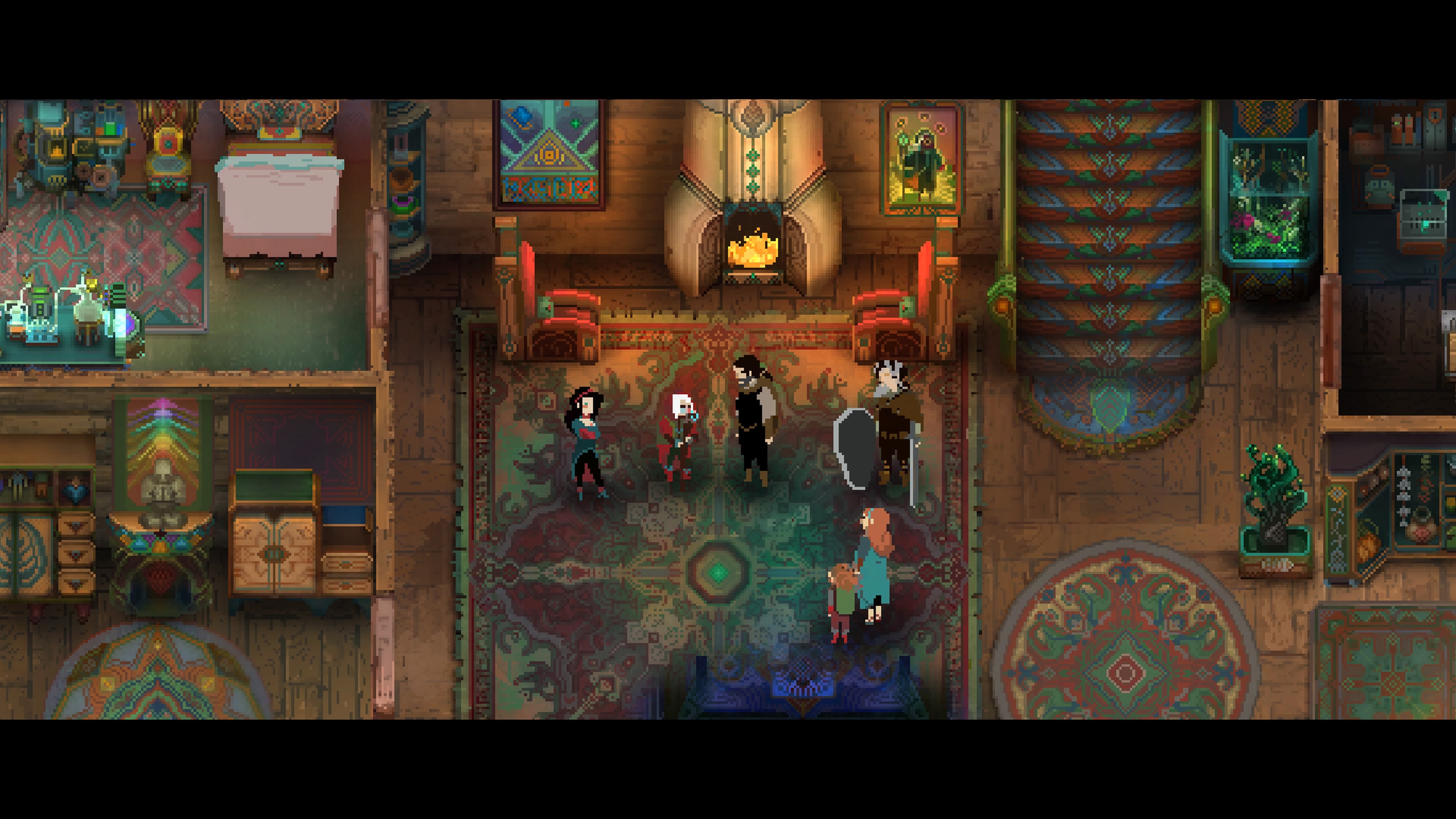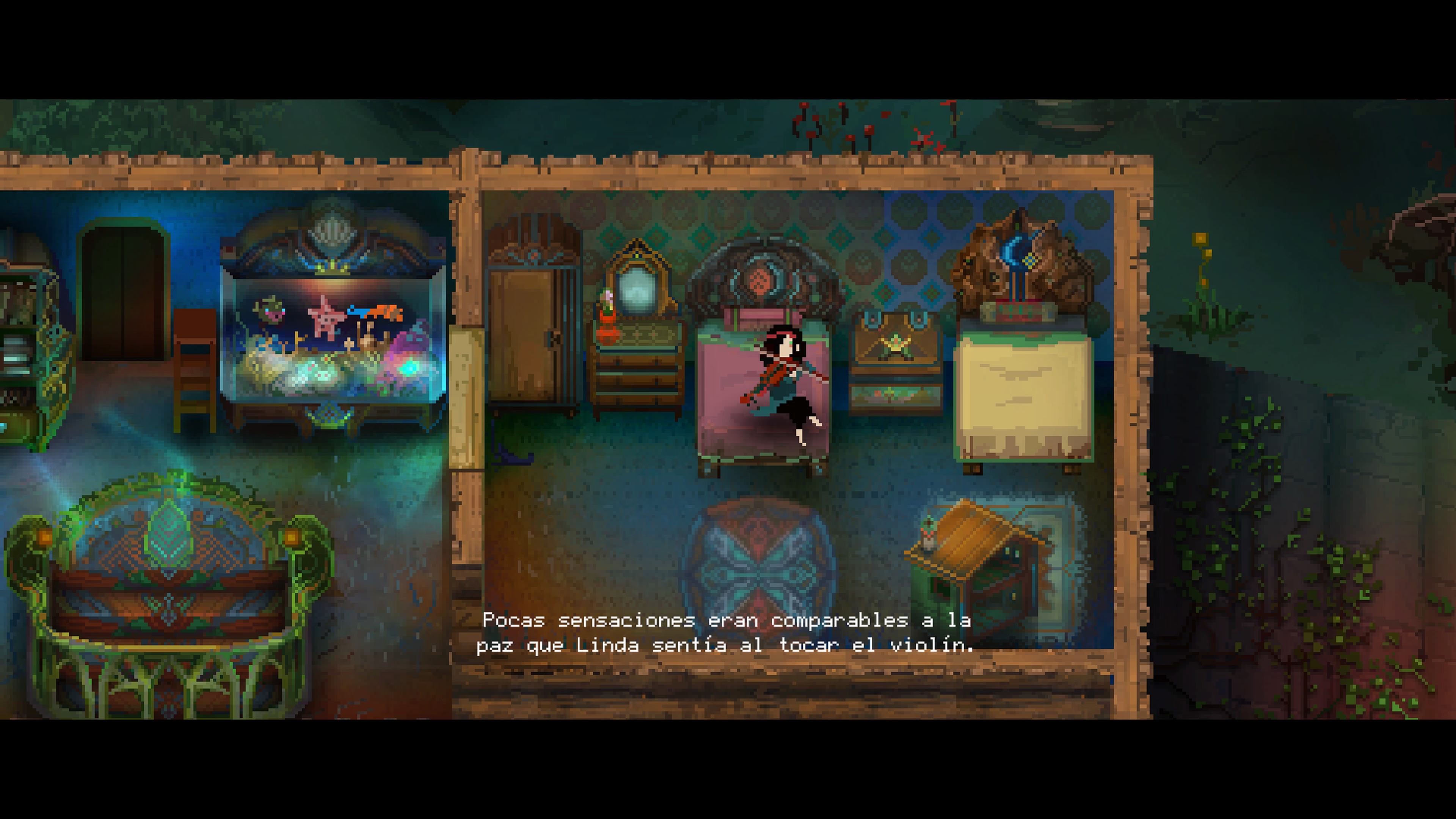 Children of Morta nos presenta unos gráficos pixel-art muy, pero que muy detallados en escenarios y objetos. Una cosa bastante curiosa es que si bien los personajes y enemigos no están tan detallados como los escenarios, sí que tienen unas animaciones tremendamente fluidas y muy trabajadas. Por ejemplo, es fantástico ver como entrena Kevin los movimientos de artes marciales de su hermano.