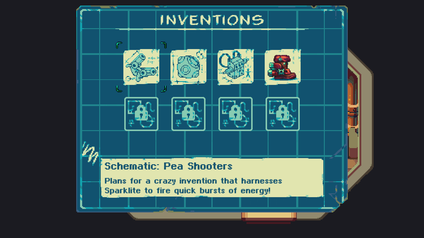 Junto a nuestra llave inglesa, también contaremos con una serie de armas secundarias que nos ayudarán a derrotar y definir estrategias contra los enemigos, como pueden ser proyectiles o bombas. Estas armas no estarán presentes desde el principio y para poder utilizarlas deberemos encontrarlas en algunas mazmorras superando algunos puzles previamente. Este tipo de objetos si serán algunos de los que perderemos al morir, pero, una vez que los hayamos desbloqueado por primera vez, tendremos la opción de comprarlas e la tienda y así incorporarlas de nuevo a nuestro inventario.