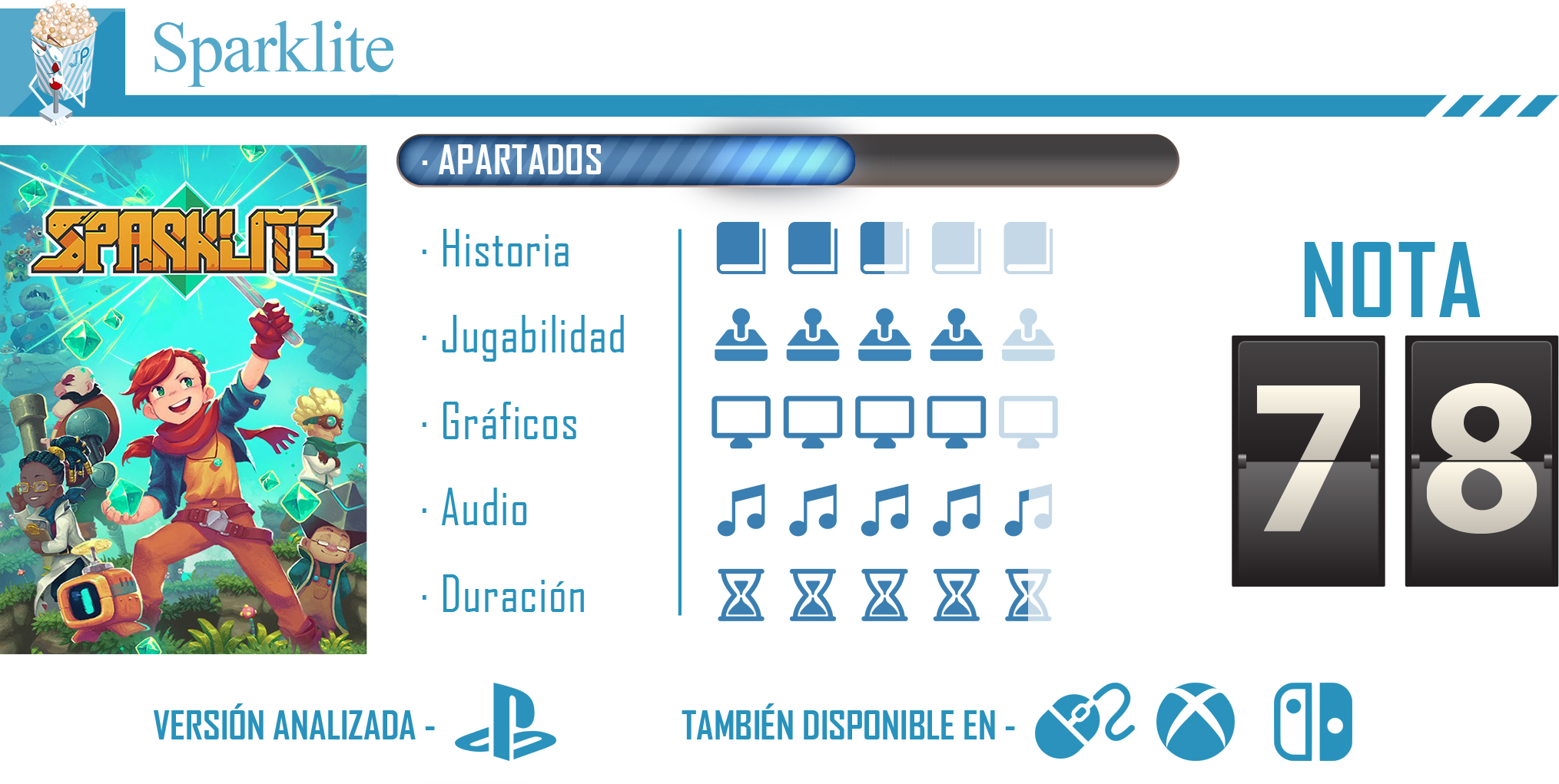 Puede que Sparklite no revolucione el género de los roguelike ni los de exploración de mazmorra, pero si goza de una personalidad que lo hace una aventura realmente recomendable. Su progresión es sin duda lo más llamativo ya que con cada muerte nos invitará a ir más lejos y a superar ese punto donde caímos por primera vez, ayudándonos de nuevas armas y habilidades.